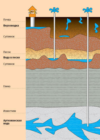 Для водозабора в Кировской области существуют два типа скважин: фильтровые (до 50 м - "на песок") и глубокие (до 250 м и более - "на известняк"), их называют "артезианскими" скважинами.